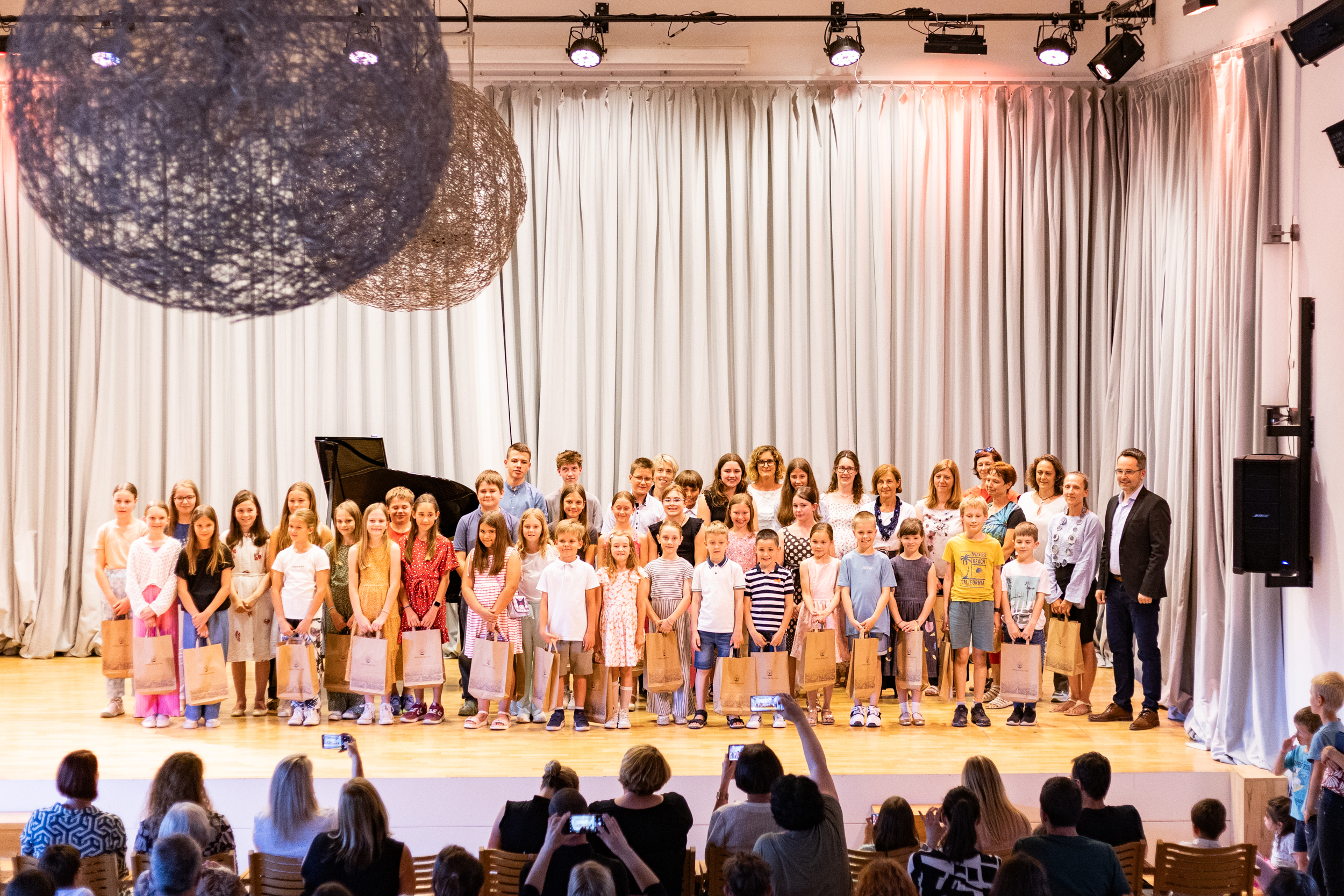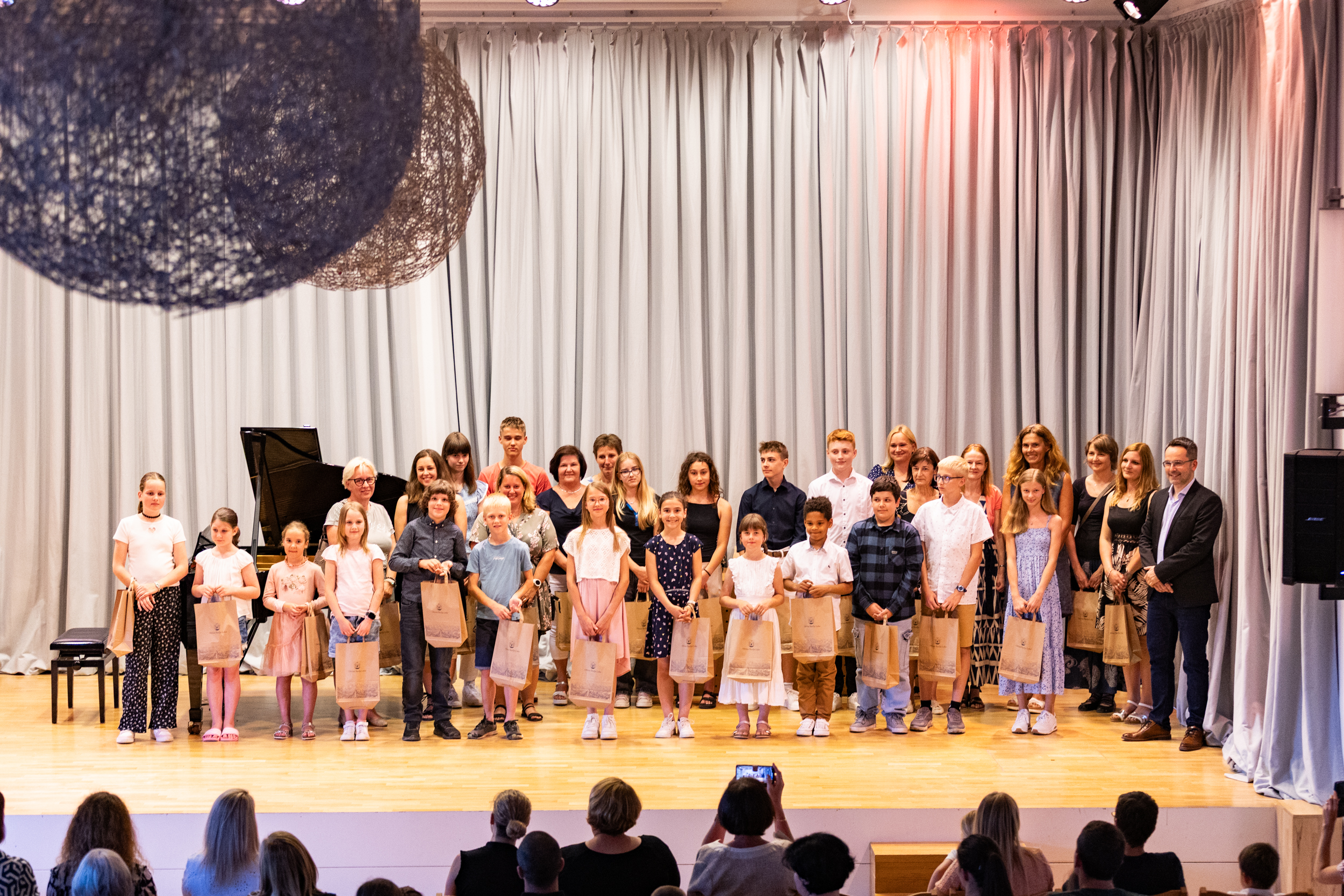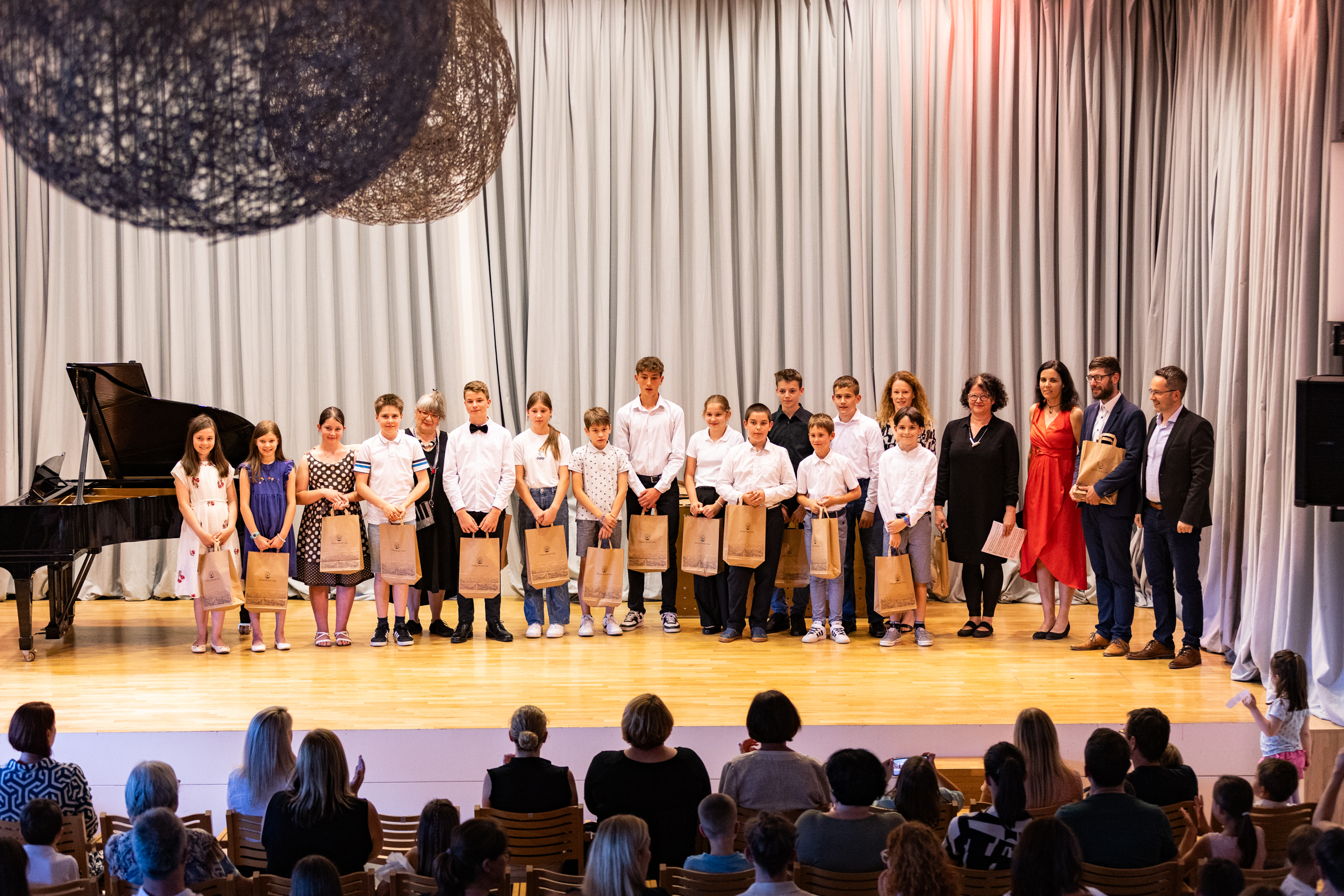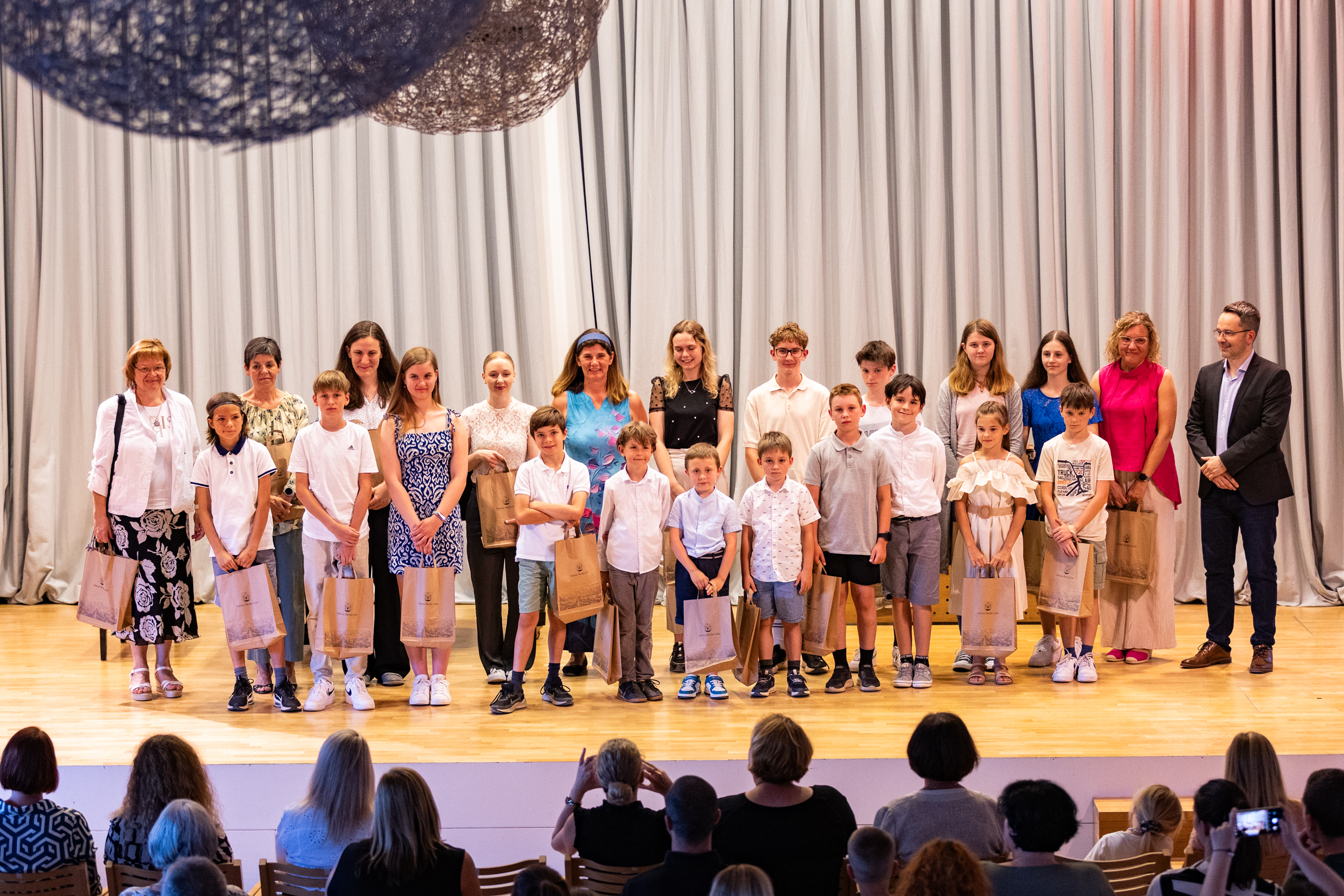 Glasbeno področje je prav tako zaznamovalo leto 2024/2025, saj so učenci Glasbene šole Škofja Loka prejeli priznanja na kar štirih pomembnih mednarodnih in državnih tekmovanjih. Njihove točke so bile tudi del kulturnega programa večera.