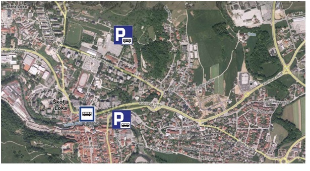 Lokacija avtobusne postaje Škofja Loka in parkirišč za avtobuse