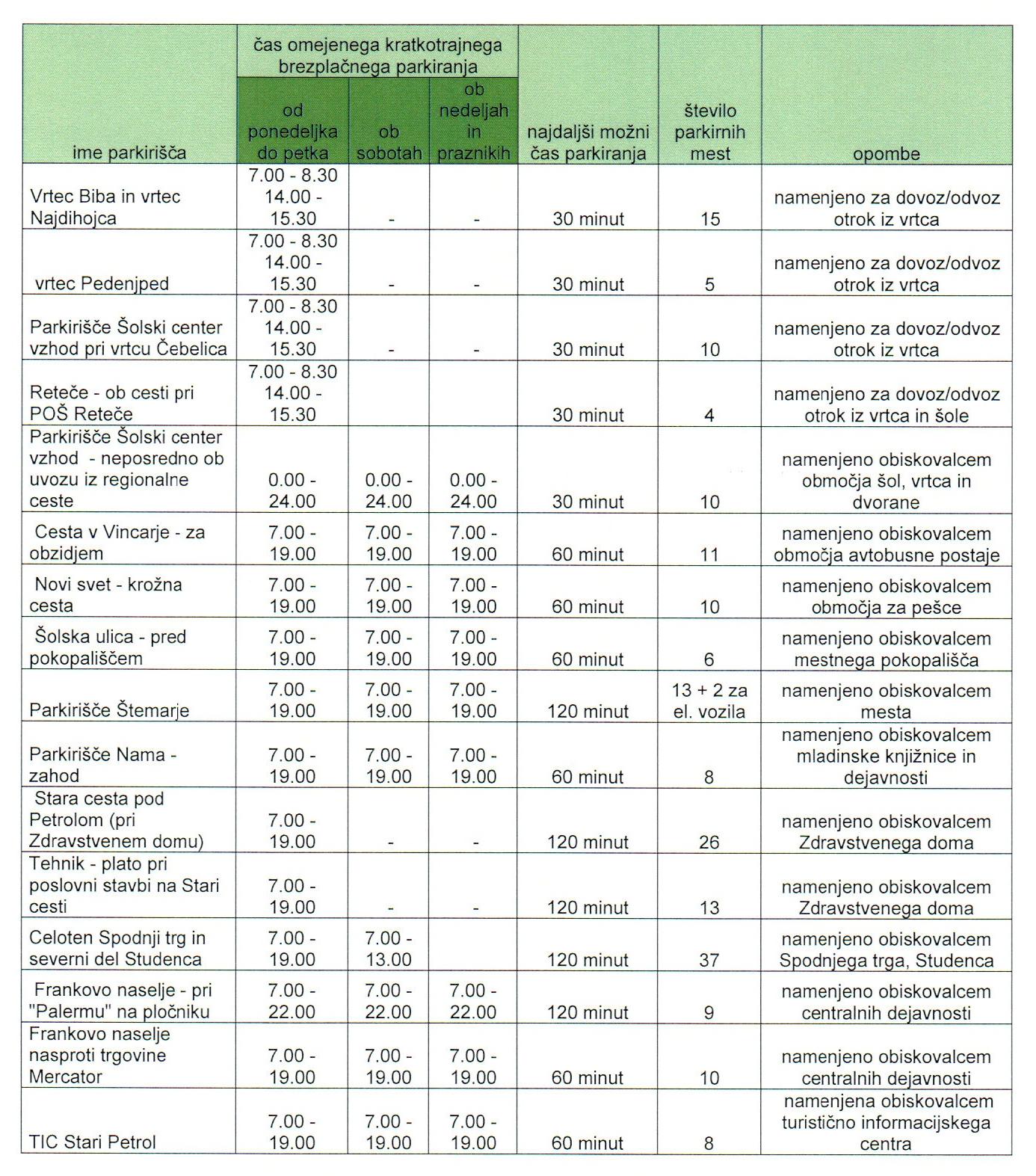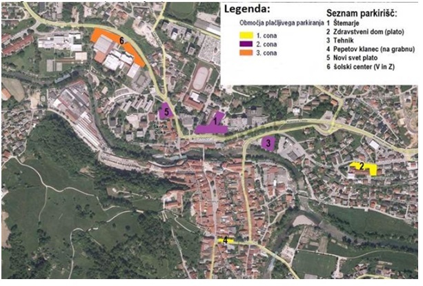 Cena in čas parkiranja na posameznih plačljivih parkiriščih: