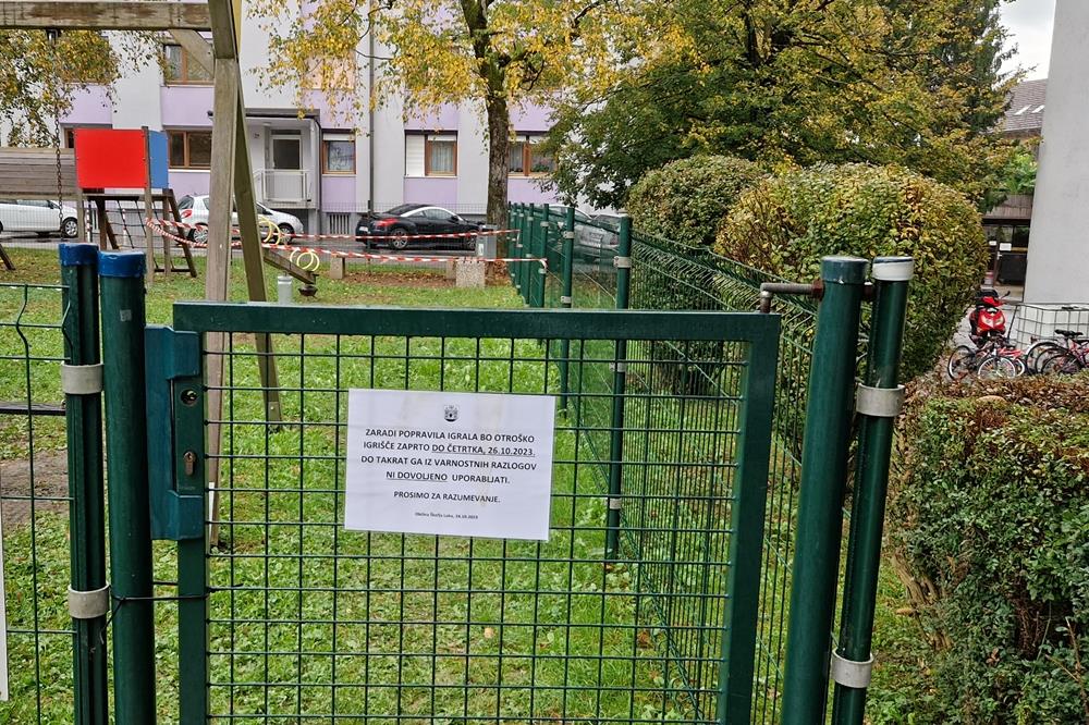 Zaradi popravila gugalnice na otroškem igrišču v Frankovem naselju 71 bo to igrišče do četrtka, 26. 10. 2023, zaprto. Območje del smo označili z zaščitnim trakom in pisnim opozorilom. Prosimo za razumevanje.