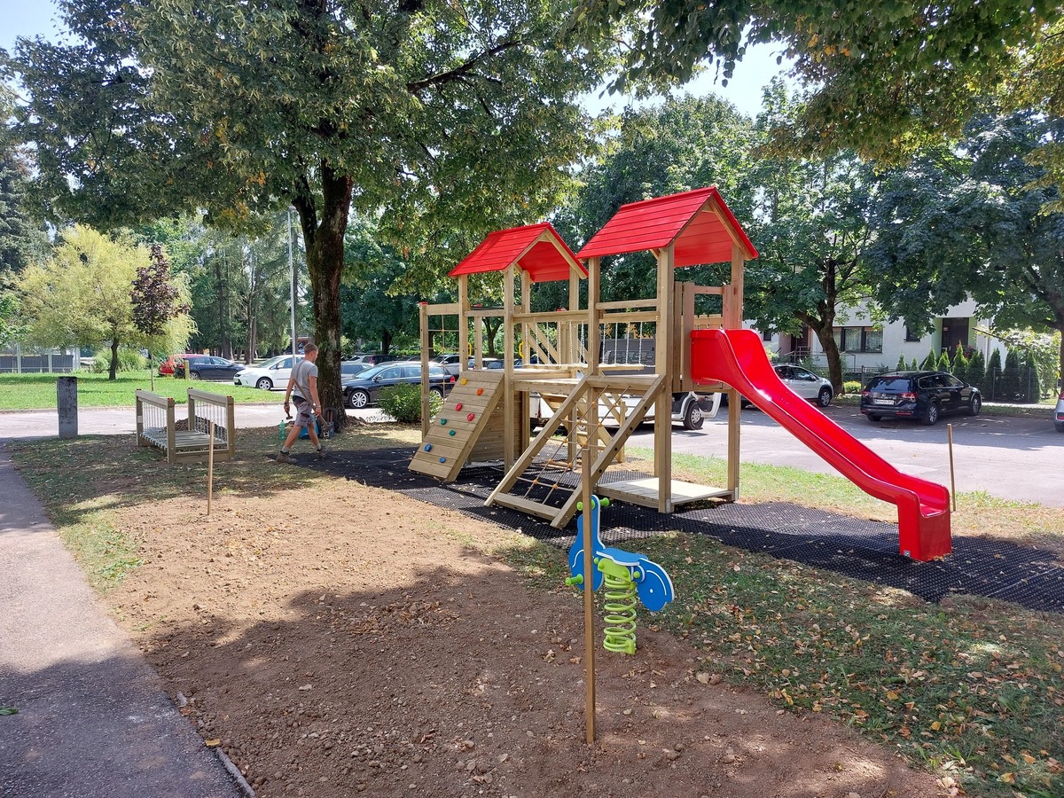 Postavljenih je 7 novih igral, ki so trenutno zaščitena pred uporabo z zaščitnim trakom. Igrišče bo v uporabi po pridobitvi pozitivnega varnostnega poročila, ki ga bo izdelal Zavod za varstvo pri delu, do takrat vas prosimo, da igral še ne uporabljate.