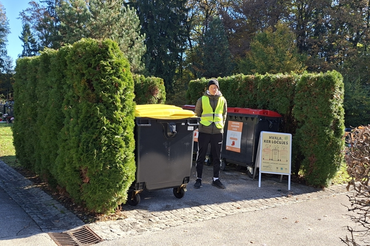 Na škofjeloških pokopališčih lahko te dni srečate zeleno stražo – prijazne posameznike in posameznice, ki obiskovalcem pomagajo pravilno ločevati odpadke ter delijo nasvete, kako zmanjšati količino odpadkov na grobovih.