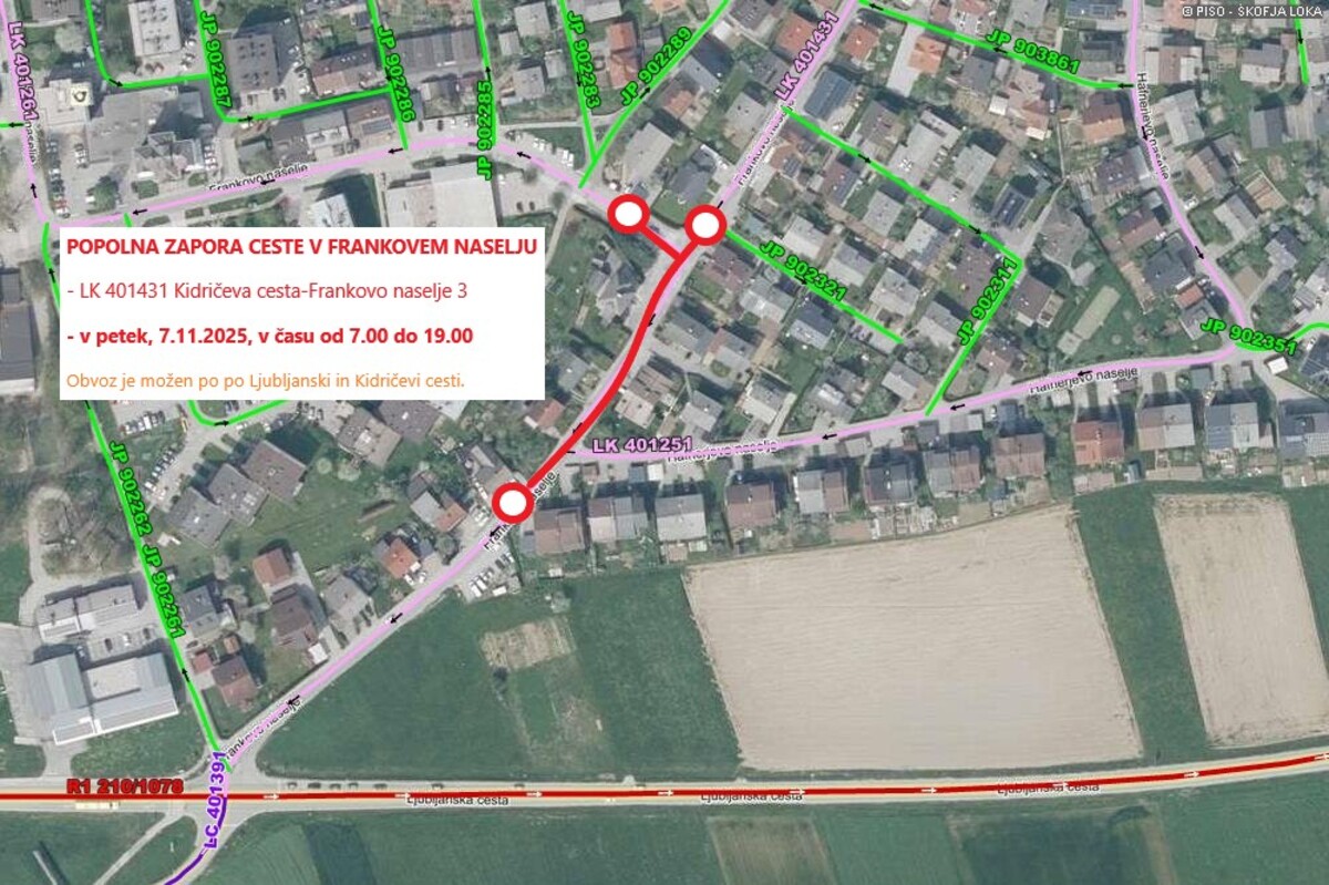 Obveščamo vas o popolni zapori ceste v Frankovem naselju. Prosimo za razumevanje.