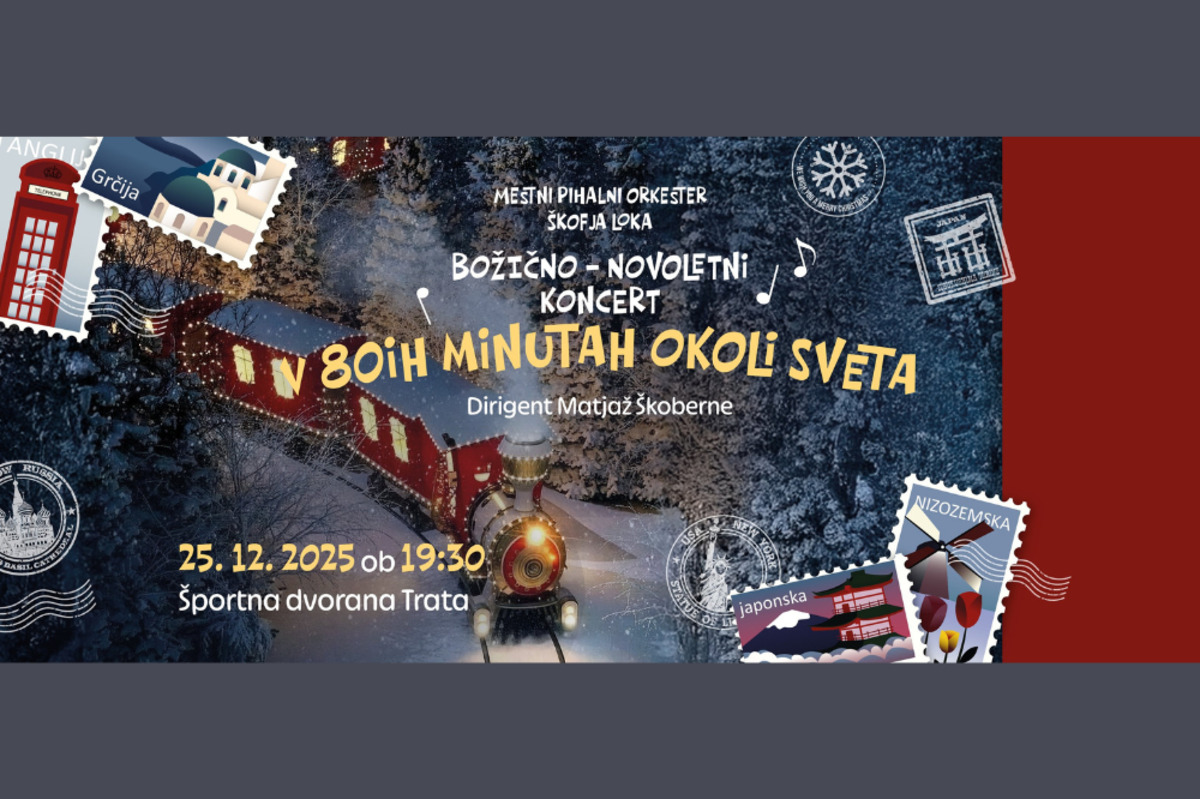 Pripnite varnostne pasove in nastavite kompas na praznično razpoloženje. Mestni pihalni orkester Škofja Loka pripravlja božično-novoletni koncert, ki bo poslušalce in poslušalke popeljal na glasbeno popotovanje po različnih kulturah in celinah sveta.