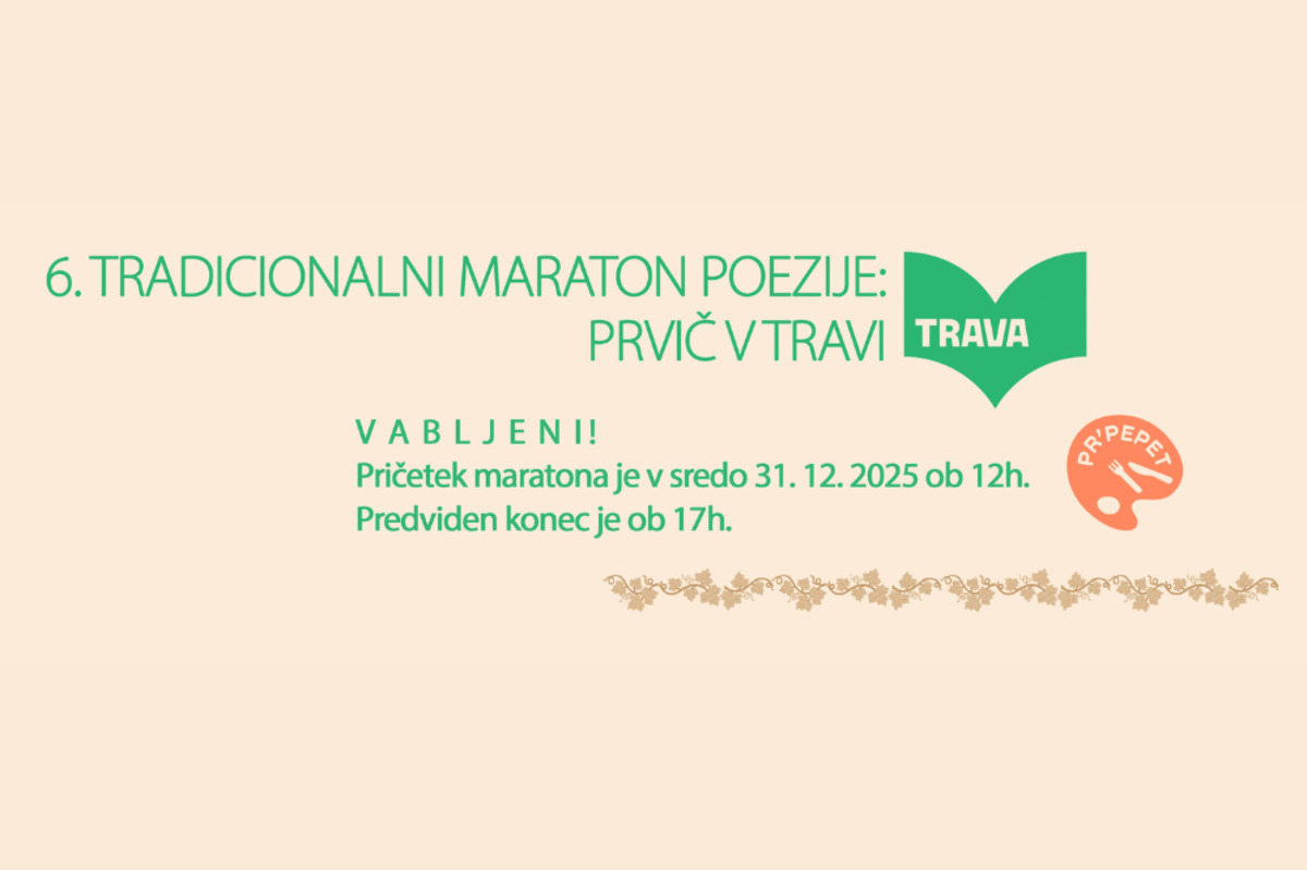 Šesti tradicionalni maraton poezije bo v sredo, 31. decembra 2025, prvič gostoval v Travi. Začel se bo ob 12. uri in bo potekal vse do predvidoma 17. ure.