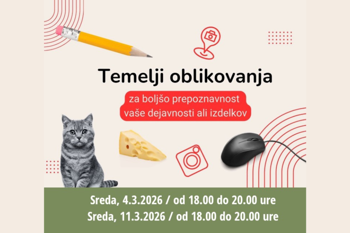 Delavnica z naslovom »Temelji oblikovanja za boljšo prepoznavnost vaše dejavnosti ali izdelkov« bo potekala v dveh terminih, 3. in 11. marca 2026, med 17. in 20. uro, preko videokonferenčne platforme Zoom.