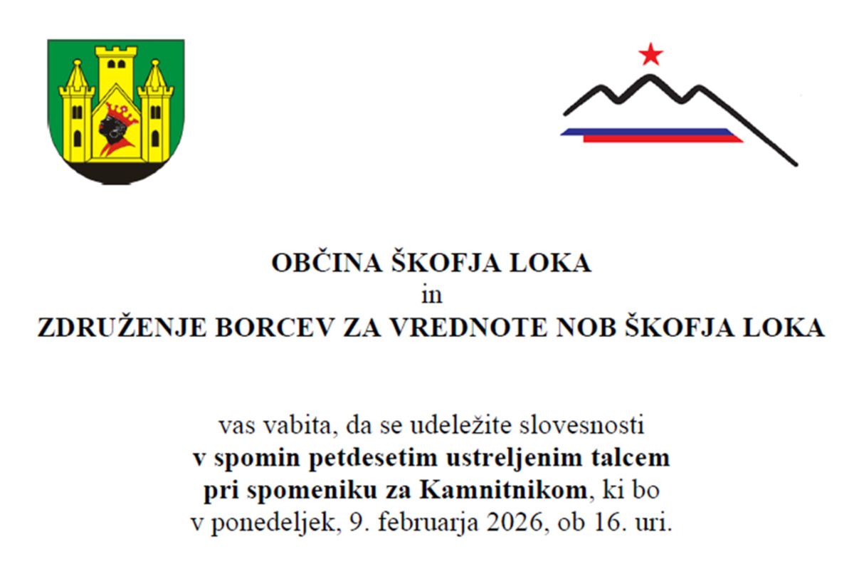 Občina Škofja Loka skupaj z Združenjem borcev za vrednote NOB Škofja Loka obvešča občanke in občane o slovesnosti v spomin petdesetim ustreljenim talcem, ki bo potekala pri spomeniku za Kamnitnikom. Slovesnost je namenjena ohranjanju zgodovinskega spomina in spoštovanju žrtev nasilja.