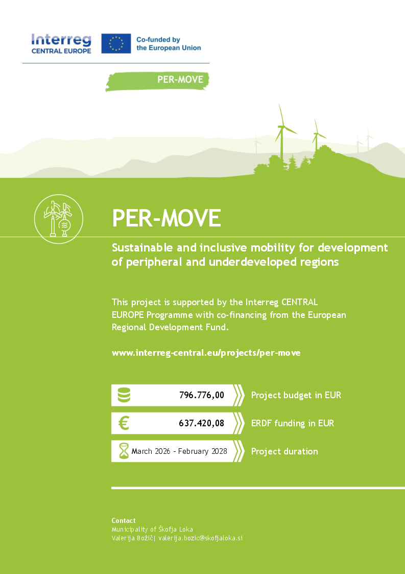 PER-MOVE je mednarodni projekt programa Interreg Central Europe 2021–2027, katerega cilj je izboljšati povezljivost med urbanimi in podeželskimi območji ter spodbujati uporabo trajnostnih oblik mobilnosti.