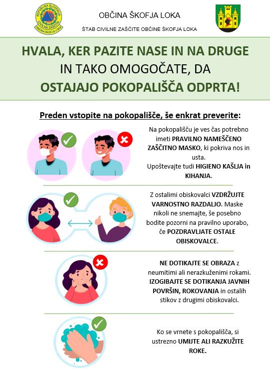 Obiskovanje škofjeloških pokopališč naj vse občanke in občani odložijo za nekaj časa in se pokojnikov raje spomnijo v varnem zavetju svojih domov. V tem trenutku je nujno potrebno zaščititi zdravje vseh nas, zato velja priporočilo, da se na grobove ne odhaja. Če se vam zdi obisk pokopališč nujen, upoštevajte navodila, ki so med drugim objavljena tudi na www.skofjaloka.si.