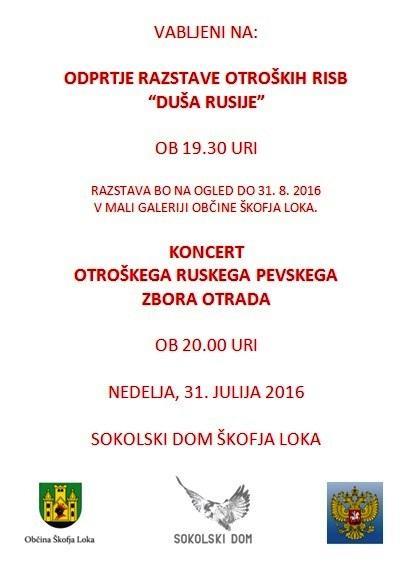 Vabilo - na odprtje razstave otroških risb ''Duša Rusije'' in koncert otroškega ruskega pevskega zbora ''Otrada'' (nedelja, 31.7.2016)