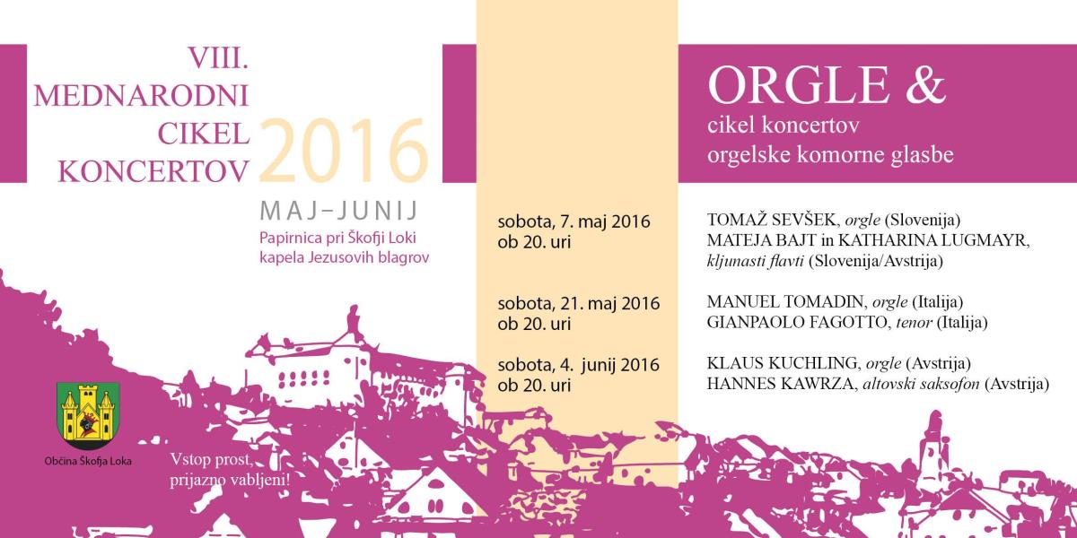 V soboto, 7. maja 2016 se z uvodnim koncertom začenja Cikel koncertov orgelske komorne glasbe ''ORGLE &''.