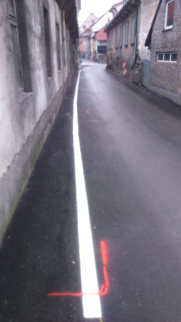 Trenutno narisana robna črta ni izvedena skladno s sklenjenim dogovorom med vzdrževalcem oziroma upravljavcem ceste DRSI in občino, zato smo zaradi neustrezne izvedbe že protestirali pri pristojnih in zahtevali korekcijo izvedbe robne črte.