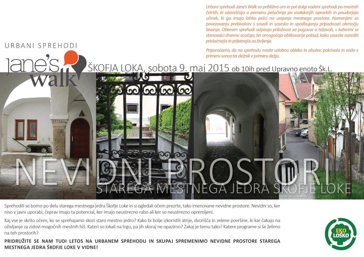 Vabilo - na Jane's Walk: ''Nevidni prostori starega mestnega jedra Škofje Loke'' (sobota, 9.maj 2015)