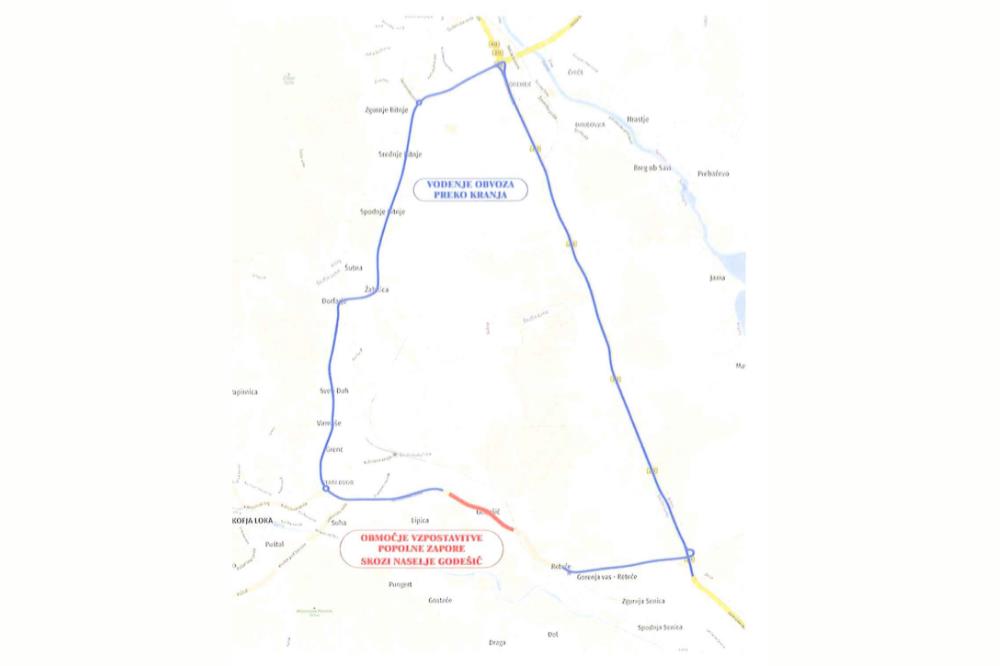 Skozi naselje Godešič bo od sobote, 9. oktobra 2021, od 7. ure dalje predvidoma do nedelje, 10. oktobra 2021, do 18. ure popolna zapora ceste zaradi asfaltiranja zaključne asfaltne plasti državne regionalne ceste (R1-210/1078).