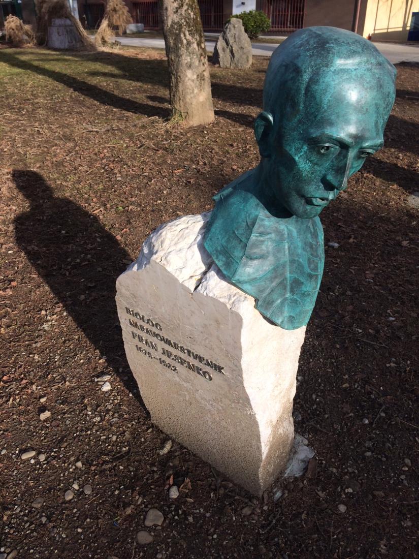Spominsko obeležje - bronasti doprsni kip s kamnitim podstavkom postavljeno v Alejo zaslužnih Ločanov na Šolski ulici v Škofji Loki v letu 2016.