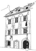 Nekdanja mestna hiša je najmarkantnejša stavba Mestnega trga iz 16.stol. To je bil sedež predstavnikov javnega loškega življenja, z mestnim sodnikom na čelu. Na pomembno mesto v zgodovini nas na vsakem koraku opozarjajo slikarski in arhitekturni elementi stavbe. Portal, veža in vrata so še gotski, arkadno dvorišče pa je renesančno. Ko so stavbo leta 1972 restavrirali, so se na fasadi prikazale baročne freske, slike stebrov, cvetlic in raznih figuralnih detajlov.