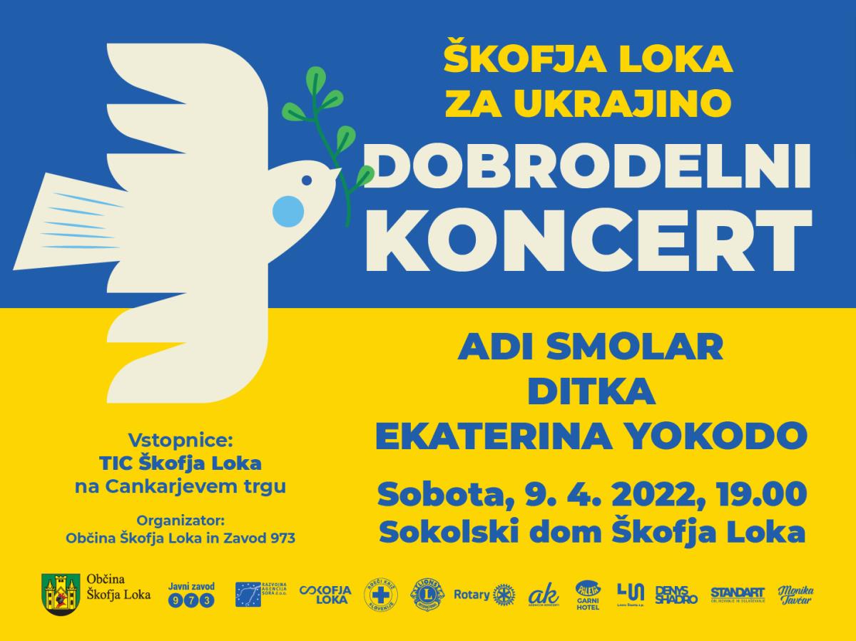 V Sokolskem domu Škofja Loka bo v soboto, 9. april 2022, ob 19. uri dobrodelni koncert Škofja Loka za Ukrajino. Nastopili bodo Adi Smolar, Ditka in Ukrajinka Ekaterina Yokodo.