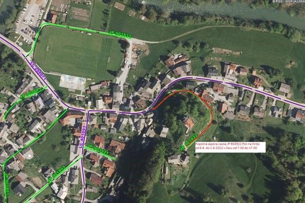 Popolna zapora ceste (903922) bo od 6. 6. 2022 do 1. 8. 2022, od 7. do 17. ure.