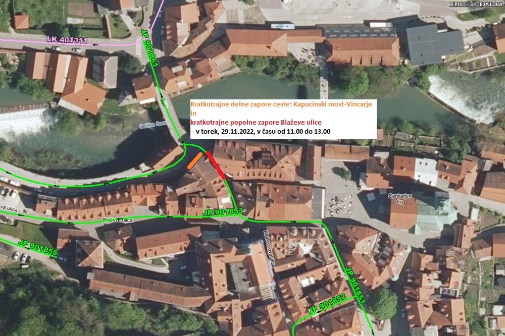 Obveščamo vas o kratkotrajnih delnih zaporah ceste Kapucinski most-Vincarje in kratkotrajnih popolnih zaporah Blaževe ulice pri objektu na naslovu Blaževa ulica 11. Prosimo za razumevanje.