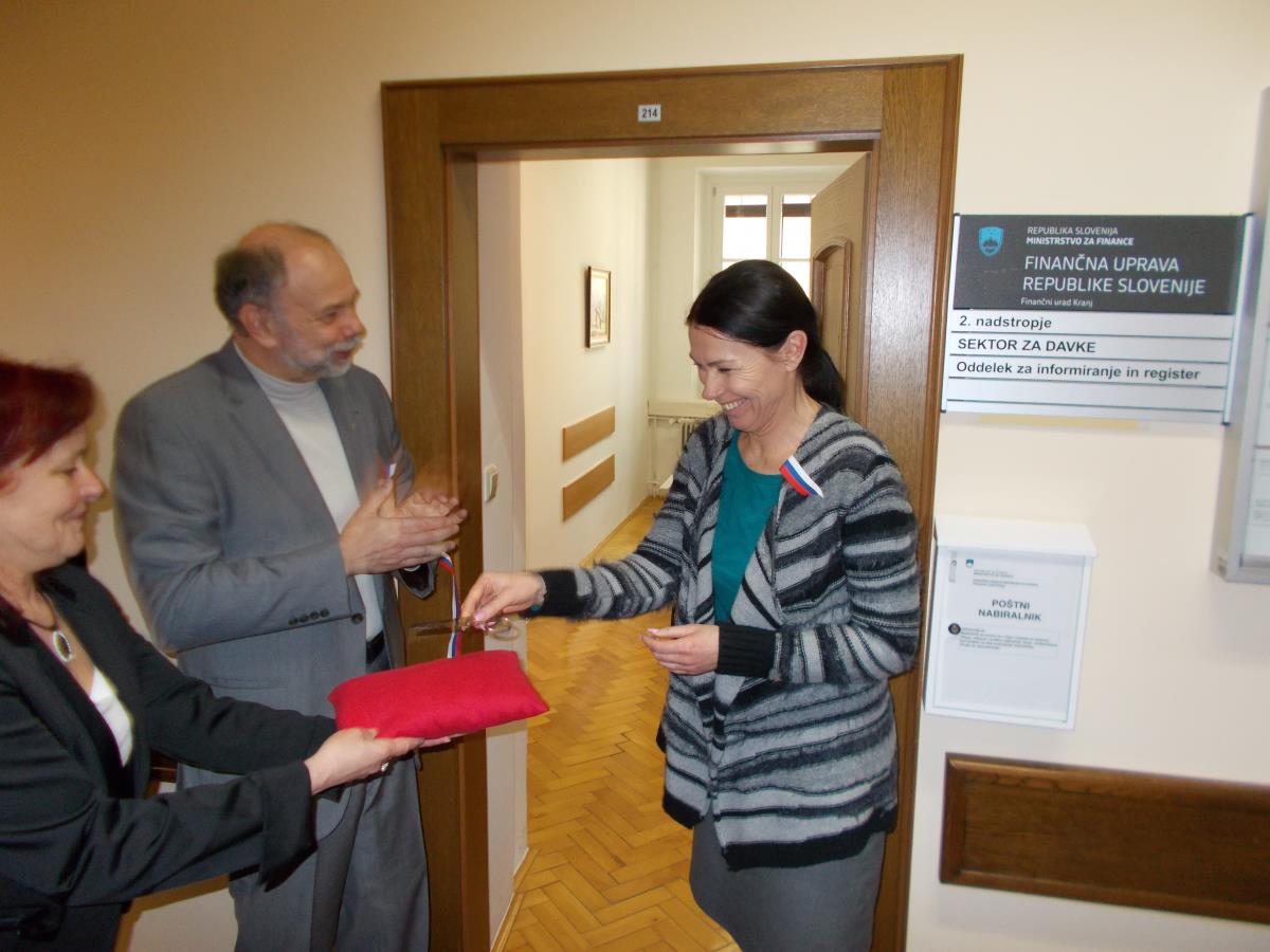 Pisarno so namenu skupaj s sodelavkami predali ga. Jana Ahčin, generalna direktorica Finančne uprave Republike Slovenije, ga. Julijana Povše, direktorica Finančnega urada Kranj in mag. Miha Ješe, župan Občine Škofja Loka.