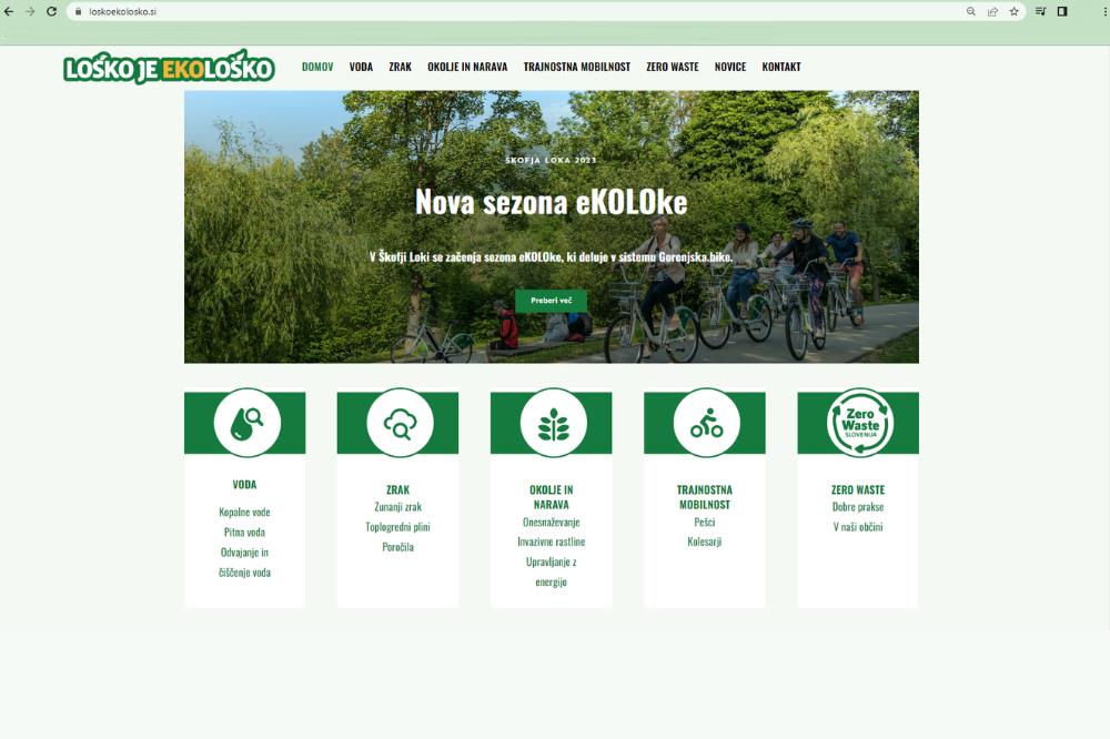 Spletna stran loskojeekolosko je sestavljena iz podstrani - voda, zrak, okolje in narava, trajnostna mobilnost in zero waste. Vse te rubrike pa nudijo še podrobnejše aktualne vsebine, ki jih je vredno spremljati.