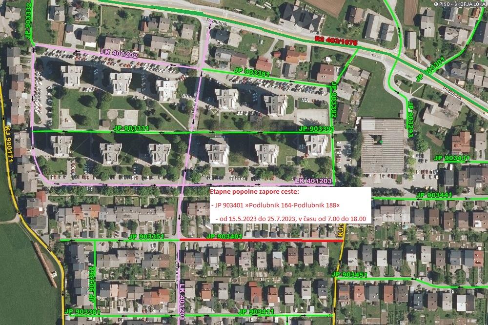 Cesta (JP 903401) »Podlubnik 164-Podlubnik 188« bo etapno popolnoma zaprta od 15. 5. 2023 do 25. 7. 2023 v času od 7. do 18. ure.