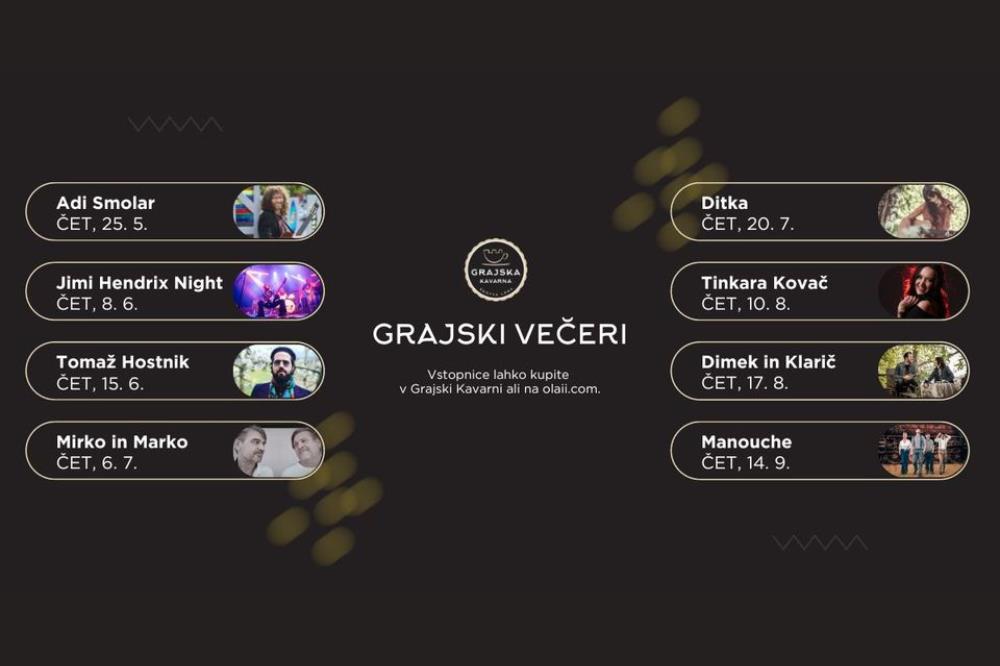 Letošnje poletje so četrtkovi večeri rezervirani za vrhunske glasbene dogodke. V čarobnem ambientu Grajske kavarne na loškem gradu se izmenjujejo izvrstni glasbeniki in glasbene skupine, ki obiskovalke in obiskovalce popeljejo na nepozabno glasbeno popotovanje.