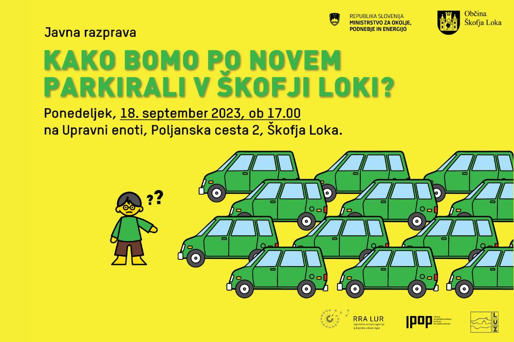 Regionalna razvojna agencija Ljubljanske urbane regije, Inštitut za politike prostora in Ljubljanski urbanistični zavod v sklopu projekta "Trajnostna parkirna politika, priprava nacionalnih smernic, strokovnih podlag in nacionalne parkirne platforme - 1. SKLOP" organizira tretjo javno razpravo o parkirni politiki v Škofji Loki.