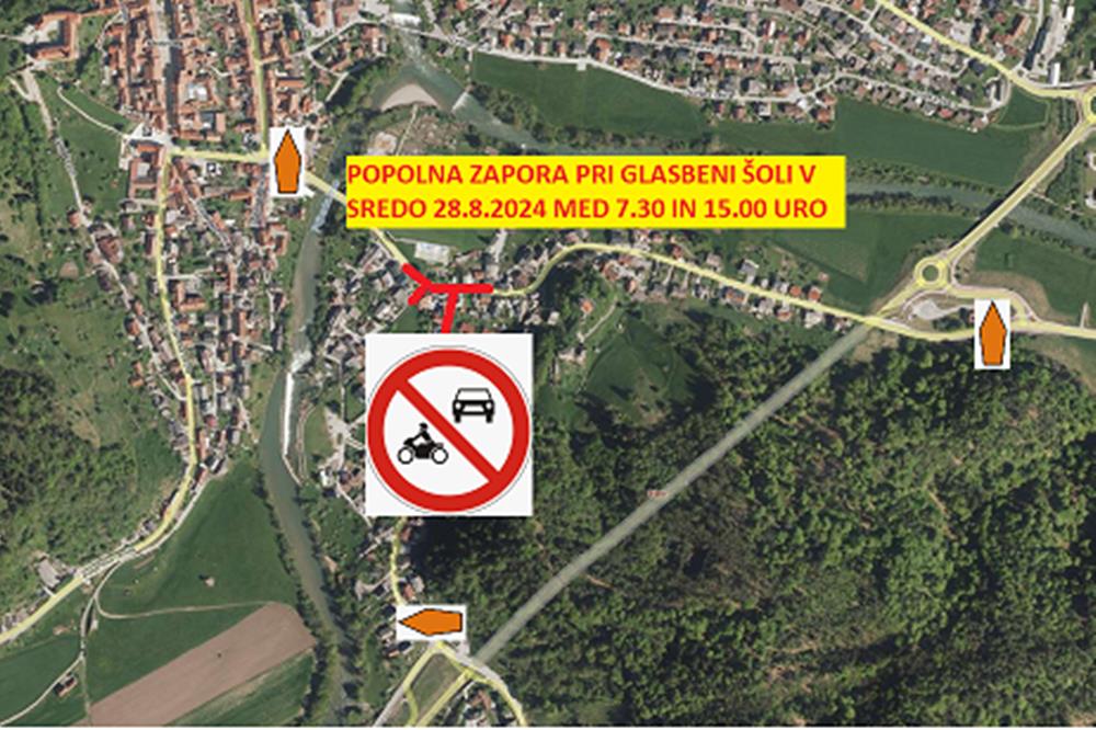 Zaradi izvedbe dodatnih ukrepov za izboljšanje prometne varnosti s strukturnim in barvnim oblikovanjem na območju Glasbene šole Škofja Loka bo v sredo, 28. avgusta 2024, od 7.30 do 15. ure na ožjem območju šole v Puštalu popolna zapora prometa iz vseh smeri za ves motorni promet. Obvoz bo možen preko obvoznice.