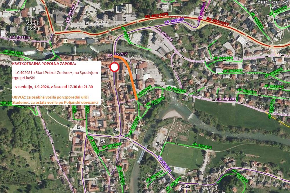 Obveščamo vas o kratkotrajni popolni zapori ceste na Spodnjem trgu pri kašči v Škofji Loki. Prosimo za razumevanje.